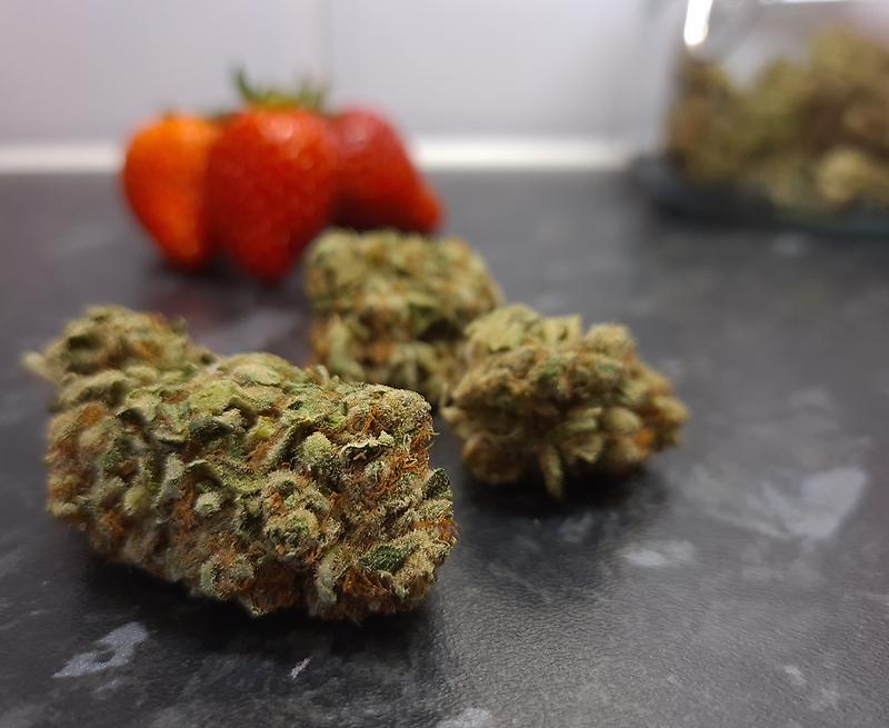 A sweet strawberry creamy taste, Potent glue Hybrid strain