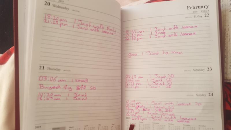 In my life diary I write what it's like... been writing what time I have a joint an who with for just over 20 months an close to 4 years on how many how much and from who lol I'll have a count up of the pages later but I'm sure it's alot