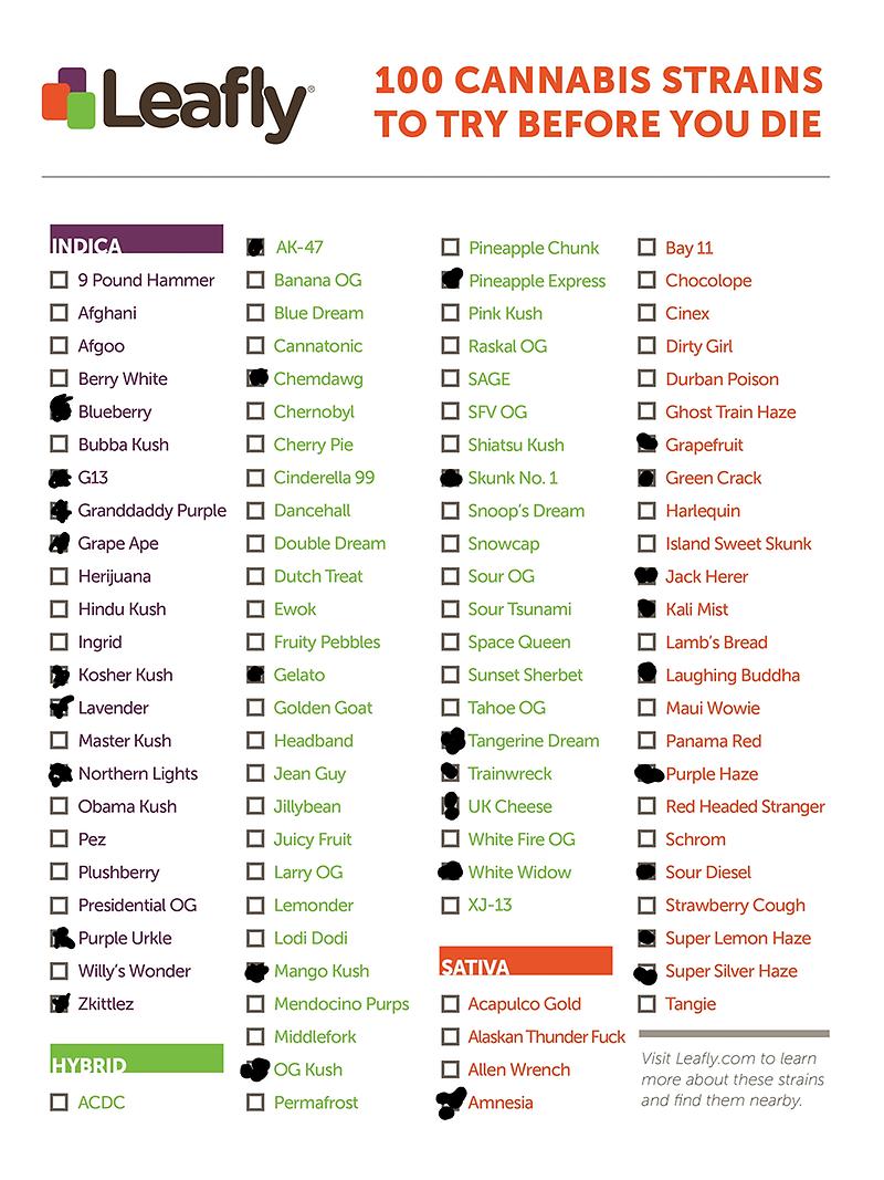 I used to keep a list & ratings on all the strains I tried. It was awesome when I first started and tried so many different ones.