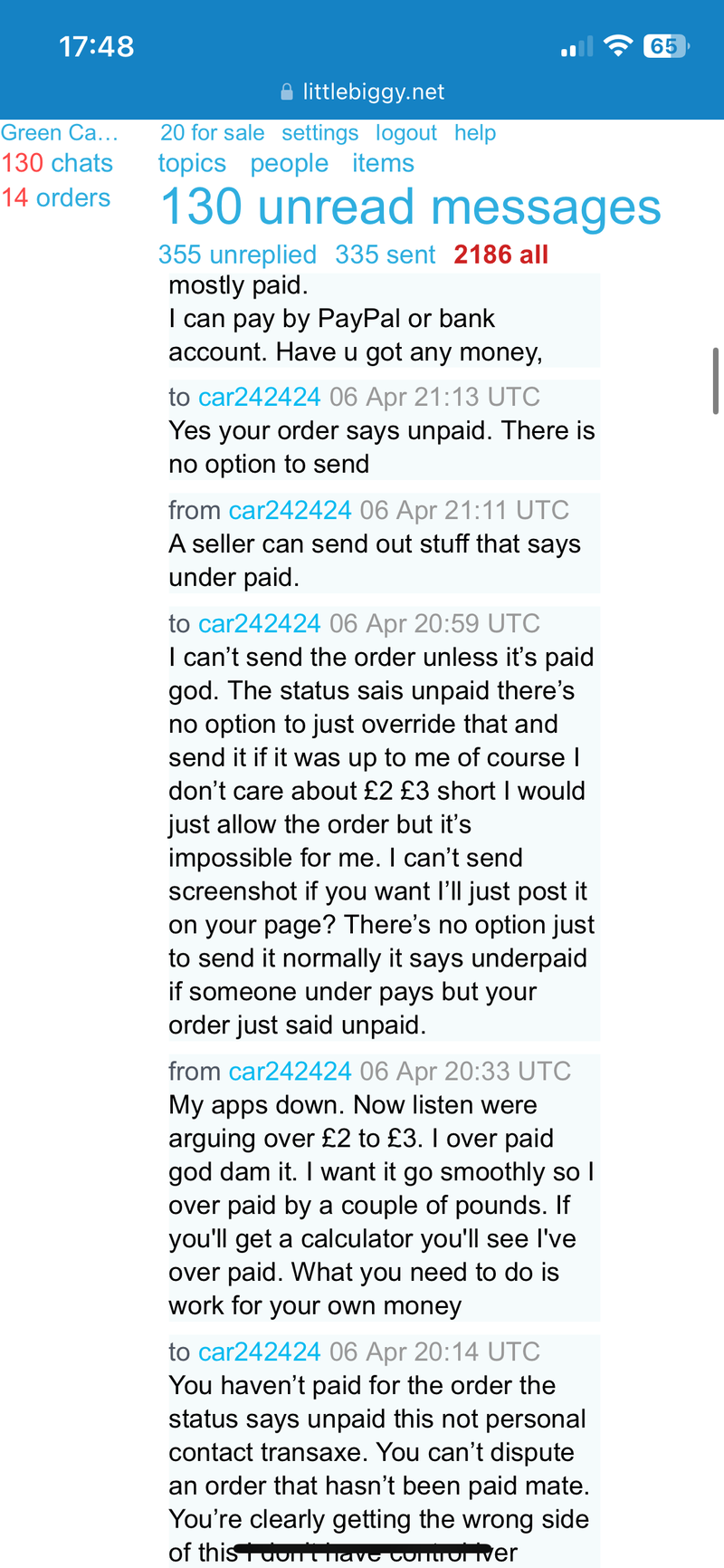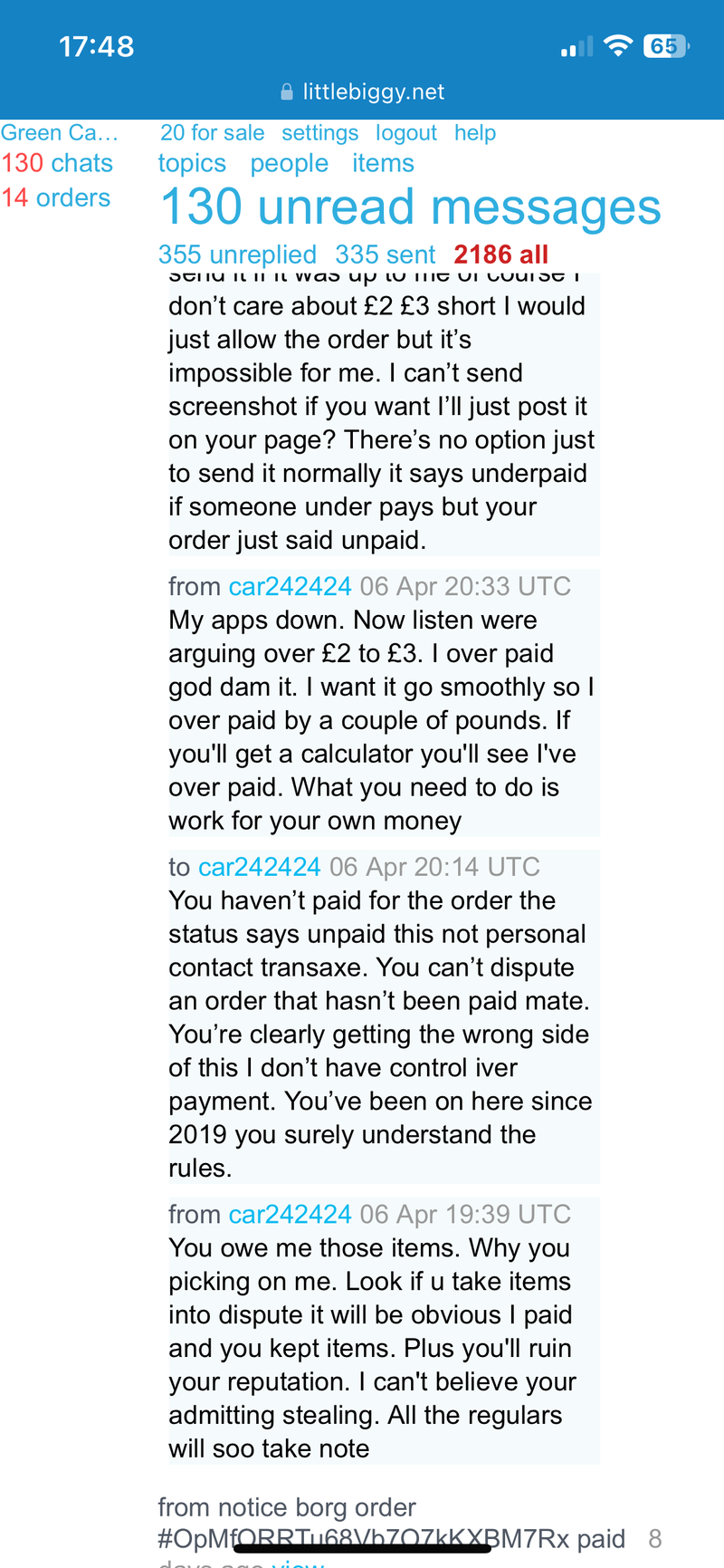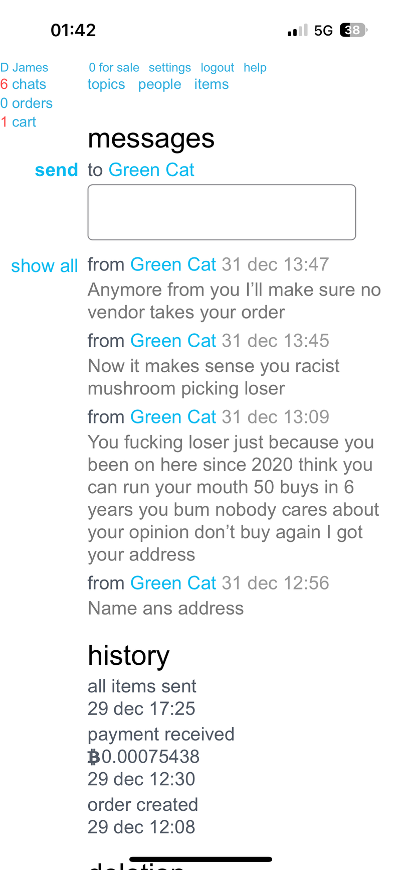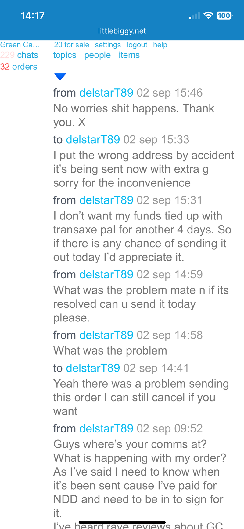 Green Cat why are you ignoring me, you have my money, I don't have my item?