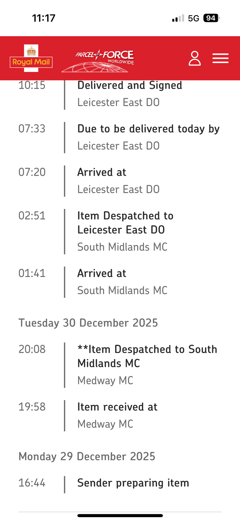 Tracking is only provided if a parcel goes missing