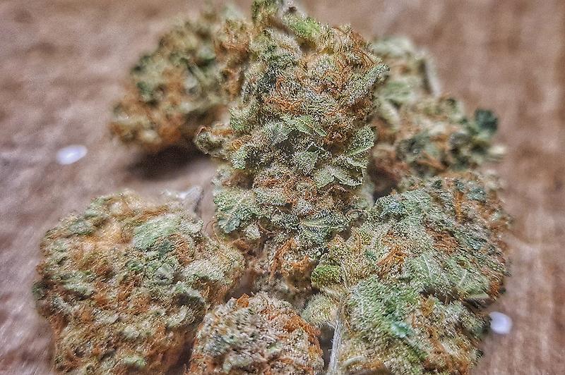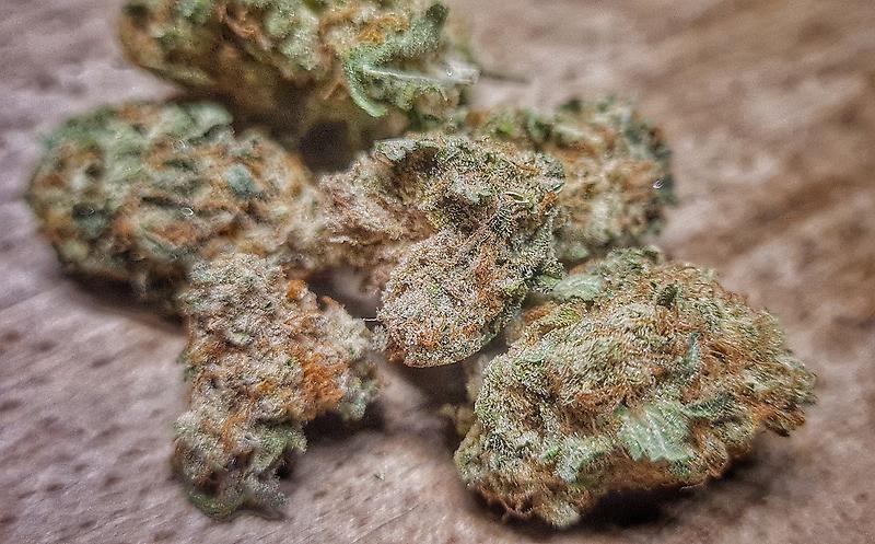 Very nice looking small buds (up to 0.6g), perfectly trimmed, not as tightly structured as the KS. Dark green with yellow and lots of very dark, almost black, flecks, with lots of orange and a nice covering of crystals. Smelled very strongly of cut grass and pine woods, pissy/dank/gassy with a hint of something sweet like sherbert. The taste is really nice and difficult to describe - it has ‘warm’ flavours, there’s something of a cosy campfire about it (!), something like coriander seed or a warm liqueur, and the exhale/aftertaste is like the honeycomb from a Crunchie with a little vanilla. There’s also the coolness of mint without tasting of mint. Very pleasant, and more to my taste than the KS. It’s obviously indica-leaning and very strong, though not as strong as the KS, and quickly creeps up on you in a cosy, enveloping-sort of way, leaving you very mellow and deeply relaxed in your body. This was quickly accompanied by a very breezy, ‘open’ feeling in the head, giving a mental clarity, again without mental chatter. The toke was the tiniest bit hot on my knackered, old lungs. It’s a really nice smoke, strong again but completely different to the KS. The strength, cosiness and clarity might make it particularly good for anxiety and/or insomnia.
