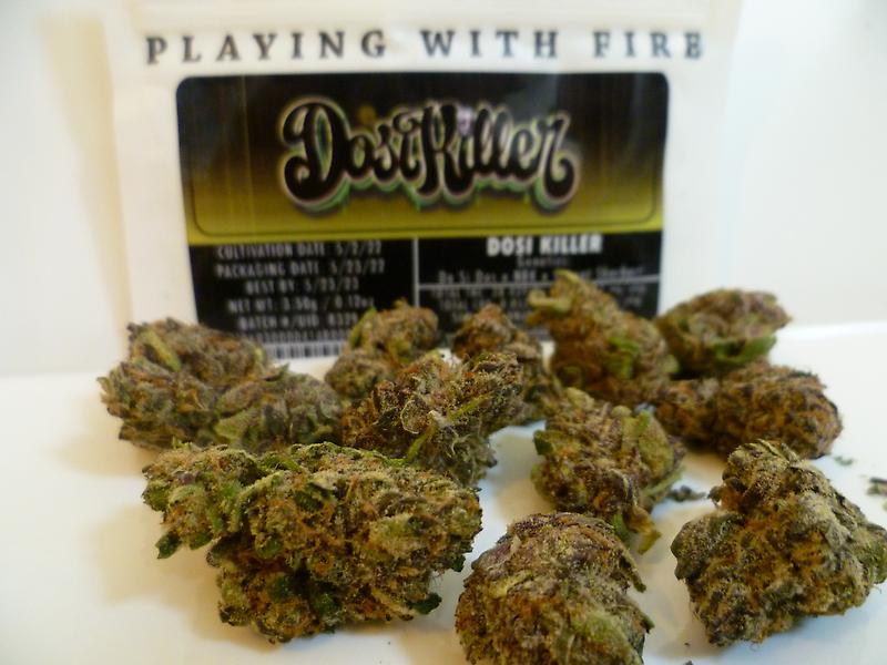 More gorgeous small to medium-sized buds (up to 1.8g), dense, perfectly trimmed to leafless. Dark green, with the orange hairs and black and yellow flecks, spiderweb tiny crystals, very pretty. Smells gorgeous too - strong and sweet, vanilla, skunky, cut wood, pine, soapy (but not lemony). A very smooth and mellow smoke with a skunky piney inhale and a really pleasant creamy, vanilla dessert/smoothie exhale - the sort of taste that makes this an ‘anytime’ smoke for me, although the strength is definitely more 'for the evening'! I couldn’t easily find info about it but it’s strong and must lean to the indica - another clean hit with no mental chatter, the effect is relaxing and ‘comforting’, like being wrapped in something cosy, and a little woozy, similar to the DoSiKiller but not as strong. It’s a very nice smoke and probably my favourite (as a regular smoke) of the four.