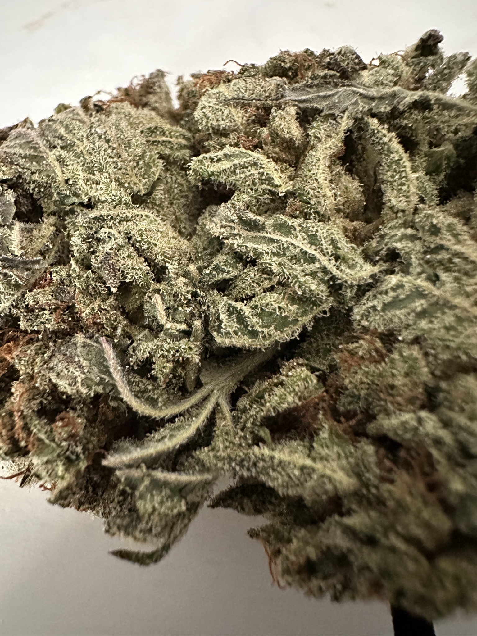 Of all the packs, the one that was most 'different' from what I’m used to was this. Beautiful dense, leafless, little nugs (up to 1.3g in size) with a nice structure. Light and very dark green flecks, lots of orange and frosty, twinkling crystals. A complex and difficult to describe aroma, smelling pleasant and unpleasant at the same time! Fruity and sour, with fresh earth and a little soap, and a hint of suede and doughnut! 😁 My smoking buddy said it smelled “like walking into a charity shop in the 80s” 😂 because of the fusty, dank smell. The taste is also difficult to describe - gassy, woody, piney, fresh earth with a little soap, mint and a subtle vanilla on the exhale - a little different but still very pleasant. What makes it so special, though, is the hit - Jesus Christ, the hit!!! It’s a 60/40 indica but the strength and the speed that it hits are unlike anything I’ve ever smoked before. The hit was immediate and very, very strong, and coming in massive waves. A very clean and ‘rushy’ hit and very euphoric - we were immediately smiling, laughing and very sociable. Affects the eyes like a strong edible, feels ‘energetic’ in your system and sends tingles through your body and head before leaving you super relaxed and a little drowsy with a warm glow. No mental chatter, very indica-y feeling. It’s definitely the strongest smoke I’ve had in 35+ years of smoking. I should say that that intensity - the rushes and euphoria - were mainly felt on the first smoke. It was the same with TGD’s Disco Biscuit, another strain I really liked. I assume it’s something to do with receptors being initially flooded with strong THC and particular terps or whatever - I’d like to understand it better if any biggas can explain. The overall strength, though, is present in every smoke. Prominent terps are linalool, limonene, phellandrene and myrcene (and I believe the myrcene is responsible for the euphoria). It’s a very special smoke and certainly something of an experience 😁 The strength of it blew us away - no whiteys or anything - I mean, come on! 😉 - but we did both have an initial moment of “fucking hell, how high is this gonna go?!!” 😂 It looks like the JB selection is constantly changing and I’m really glad I got to try this one 😊