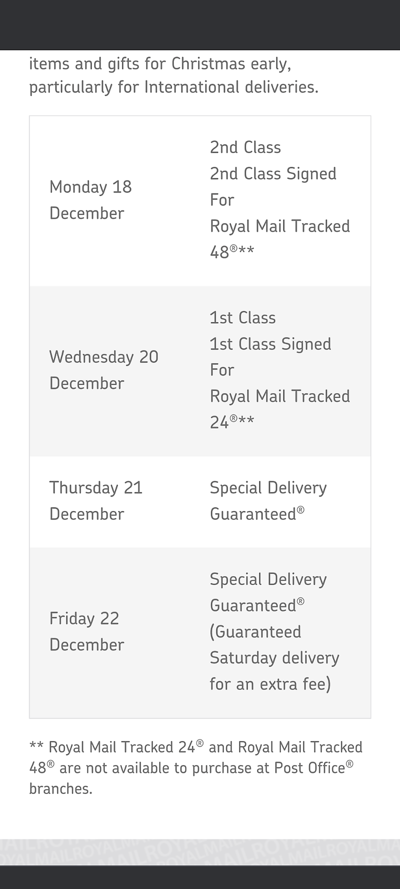 delivery in post office