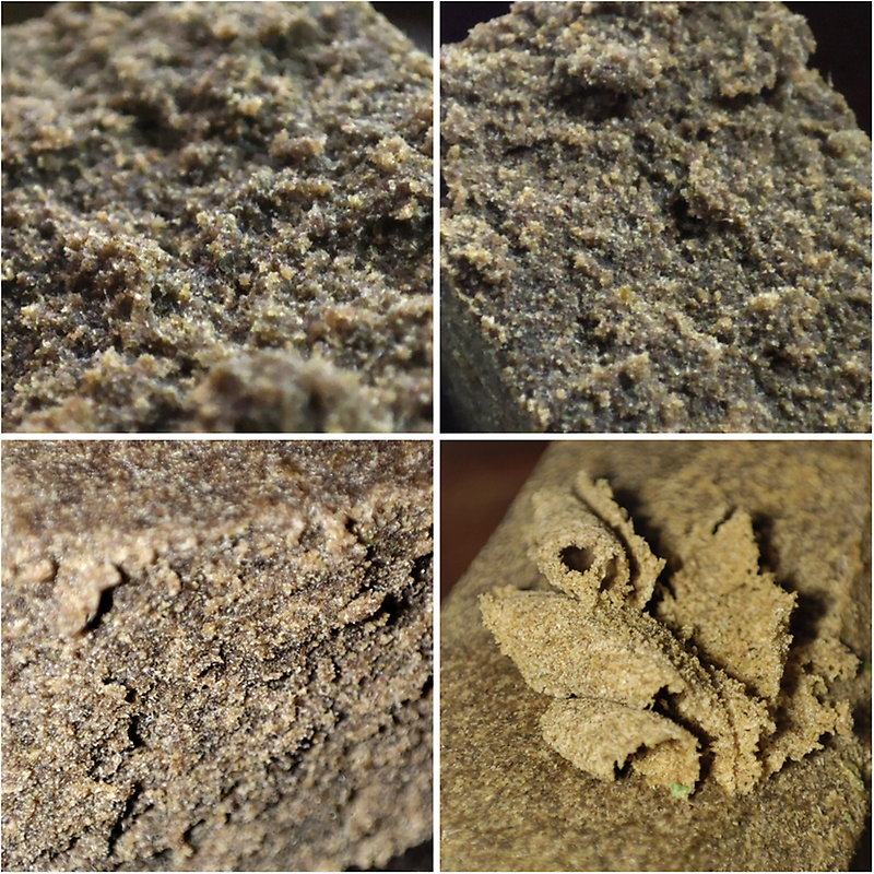 The sandy feel is typical of all pollen hash named so, I believe, because of it's partial stickiness and similarities to residue left behind from actual "Pollen"